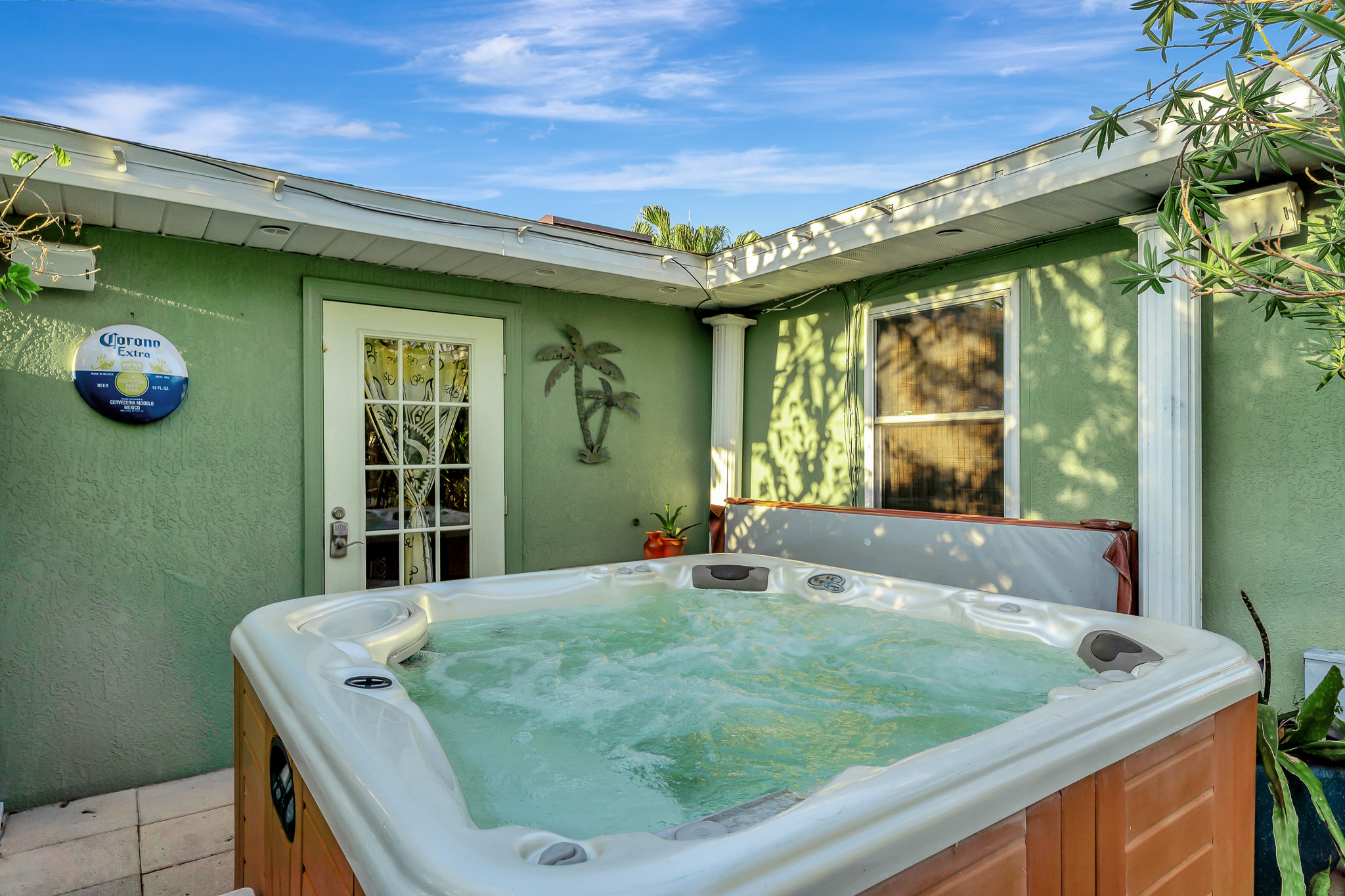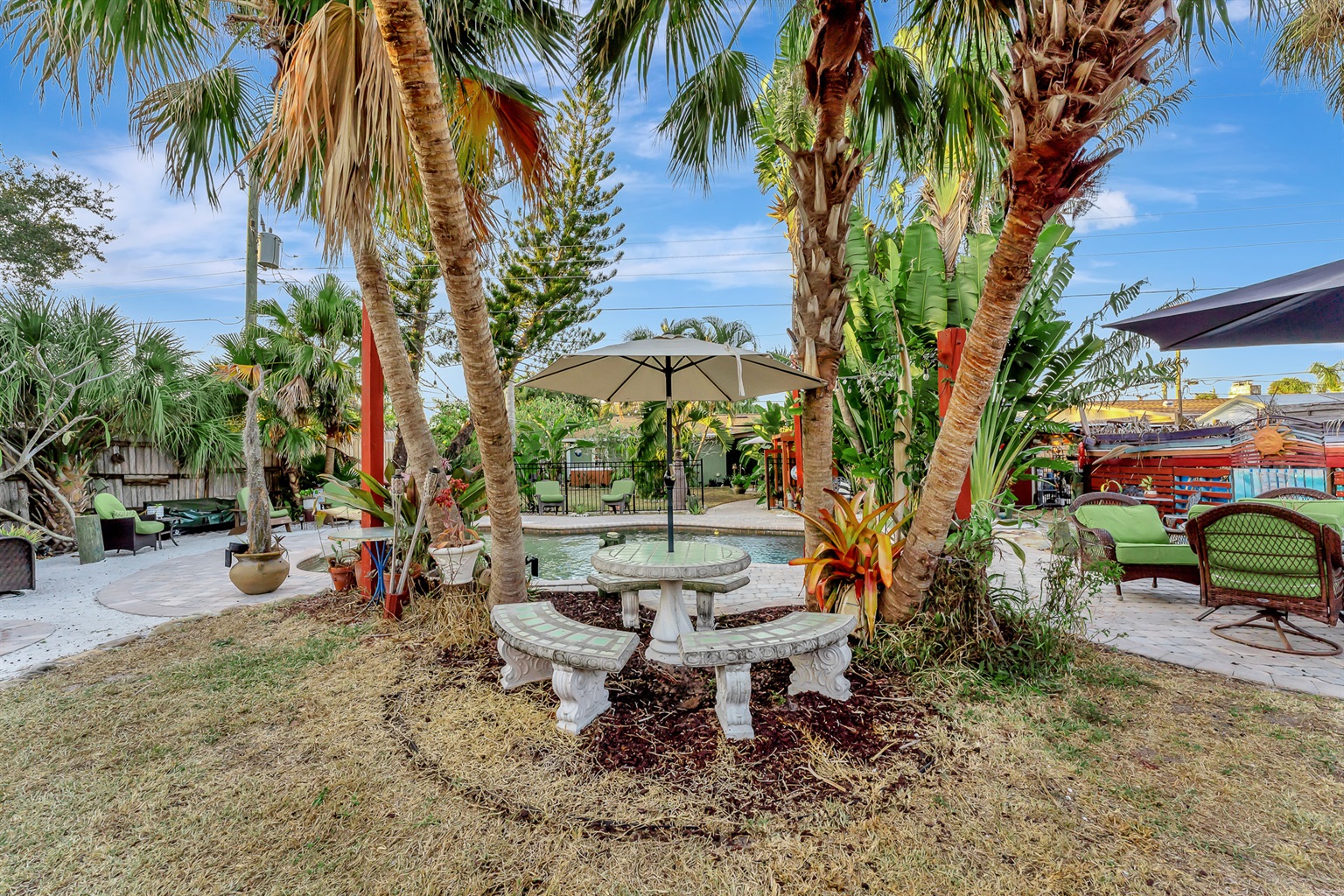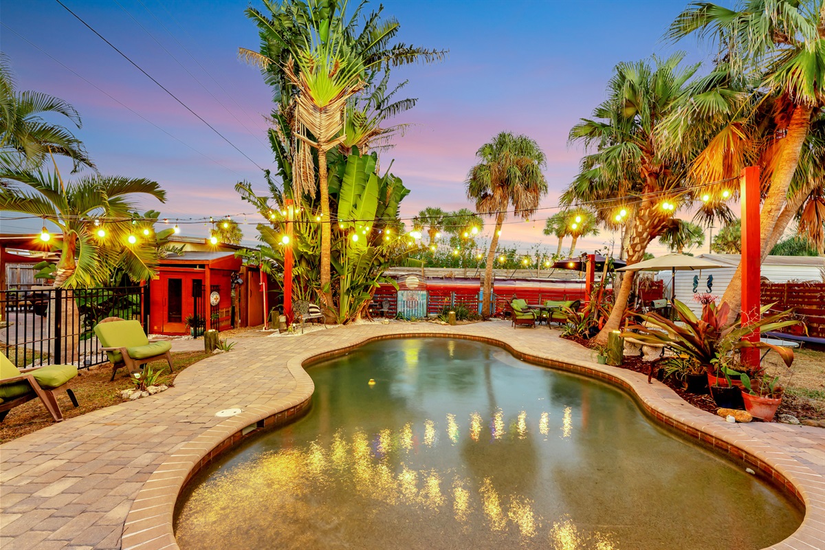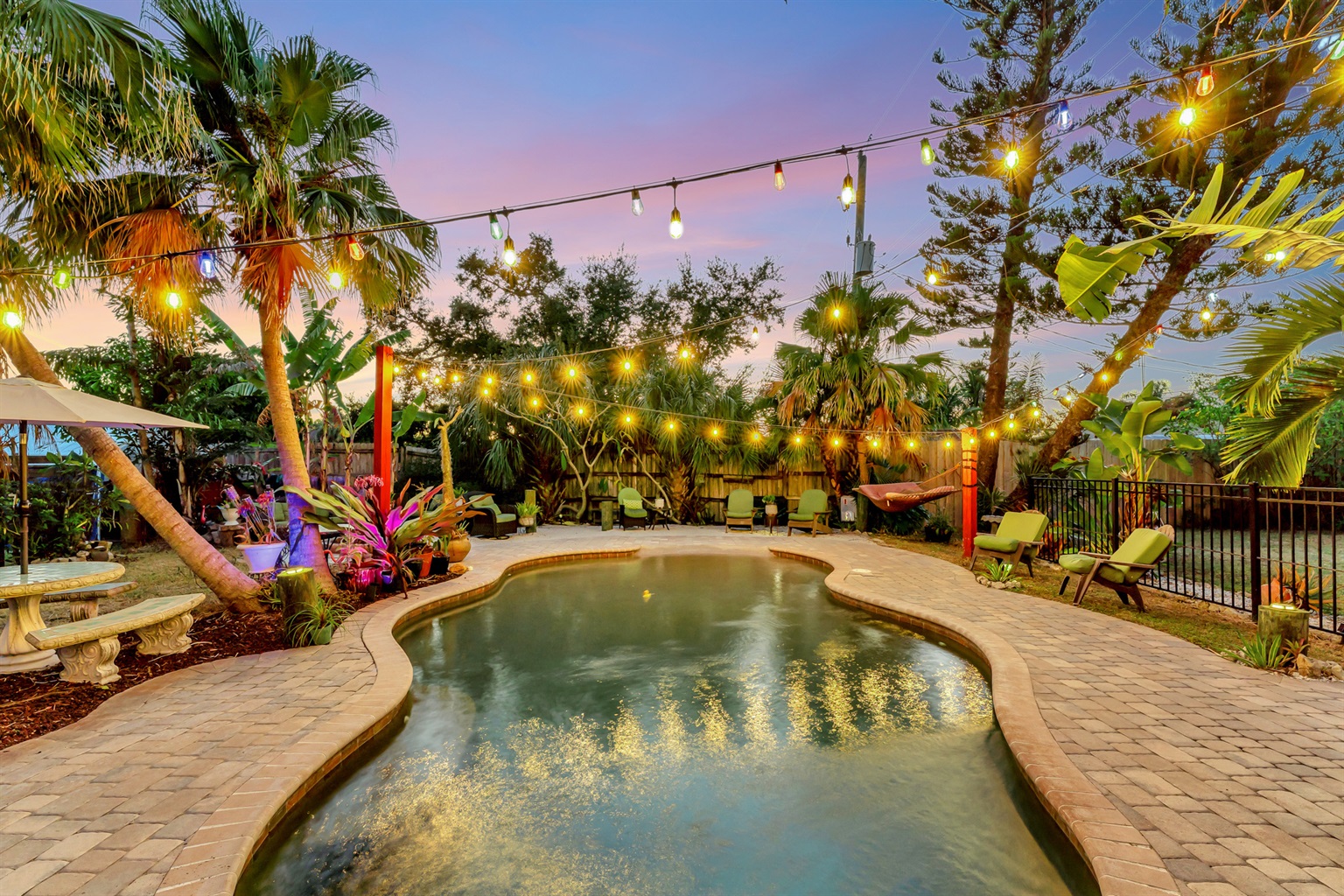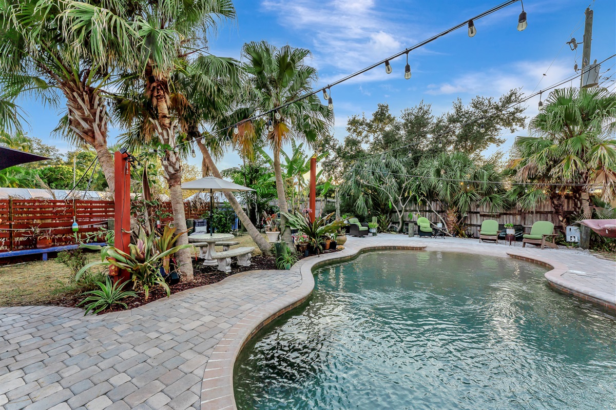 2 Bedrooms • 2 Bathrooms 2 Baths • Sleeps 4-5Discover South Venice's secret micro-resort coastal getaway! 🌴✨ This plush, pet-friendly, and peaceful (2-bedroom) home (~3-lot estate) offers a heated lagoon walk-in pool amidst pristine tropical surroundings at a prime location—just half a mile to the local South Venice Beach Ferry, which leads to the exclusive private beach on Manasota Key (accessible only to locals and Fennario Resort's guests—i.e., you).