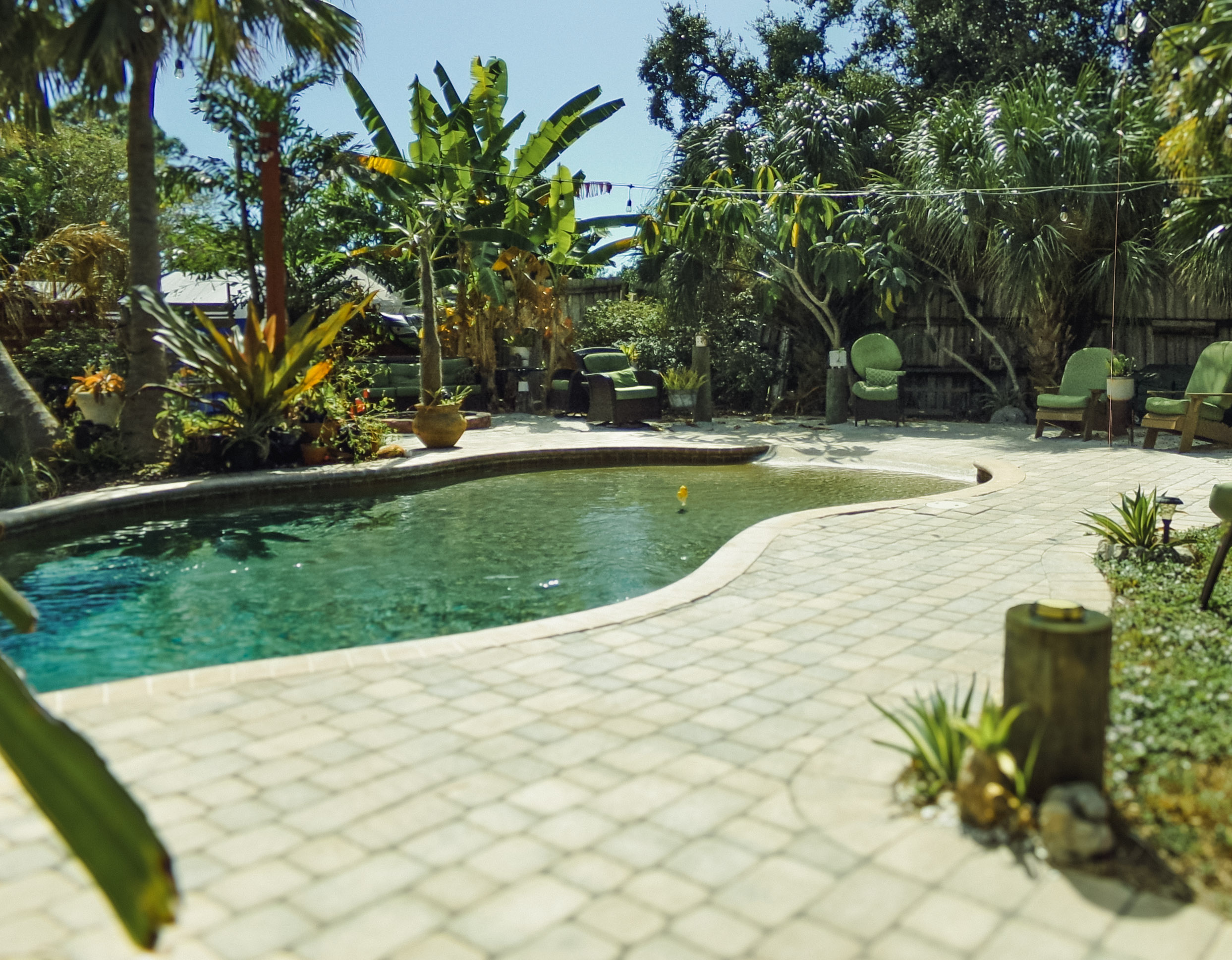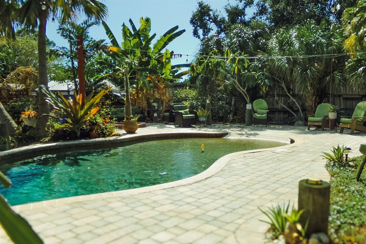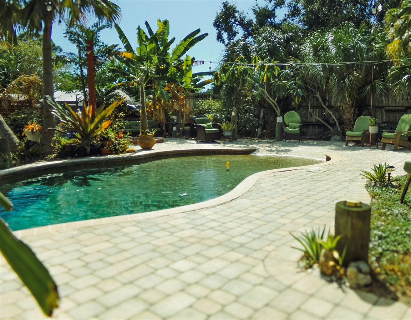 Sleeps 4-5Discover South Venice's secret micro-resort coastal getaway! 🌴✨ This plush, pet-friendly, and peaceful (2-bedroom) home (~3-lot estate) offers a heated lagoon walk-in pool amidst pristine tropical surroundings at a prime location—just half a mile to the local South Venice Beach Ferry, which leads to the exclusive private beach on Manasota Key (accessible only to locals and Fennario Resort's guests—i.e., you).